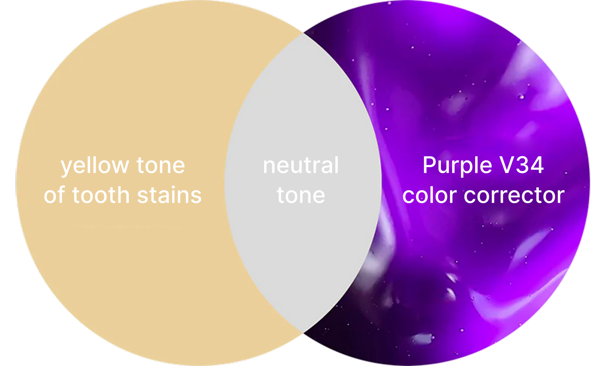 Color correction begins on the color wheel, where purple and yellow are complementary colors, opposite each other. Applying purple to your teeth will neutralize and eliminate yellow undertones, revealing a brighter shade of white. Amazing, right?